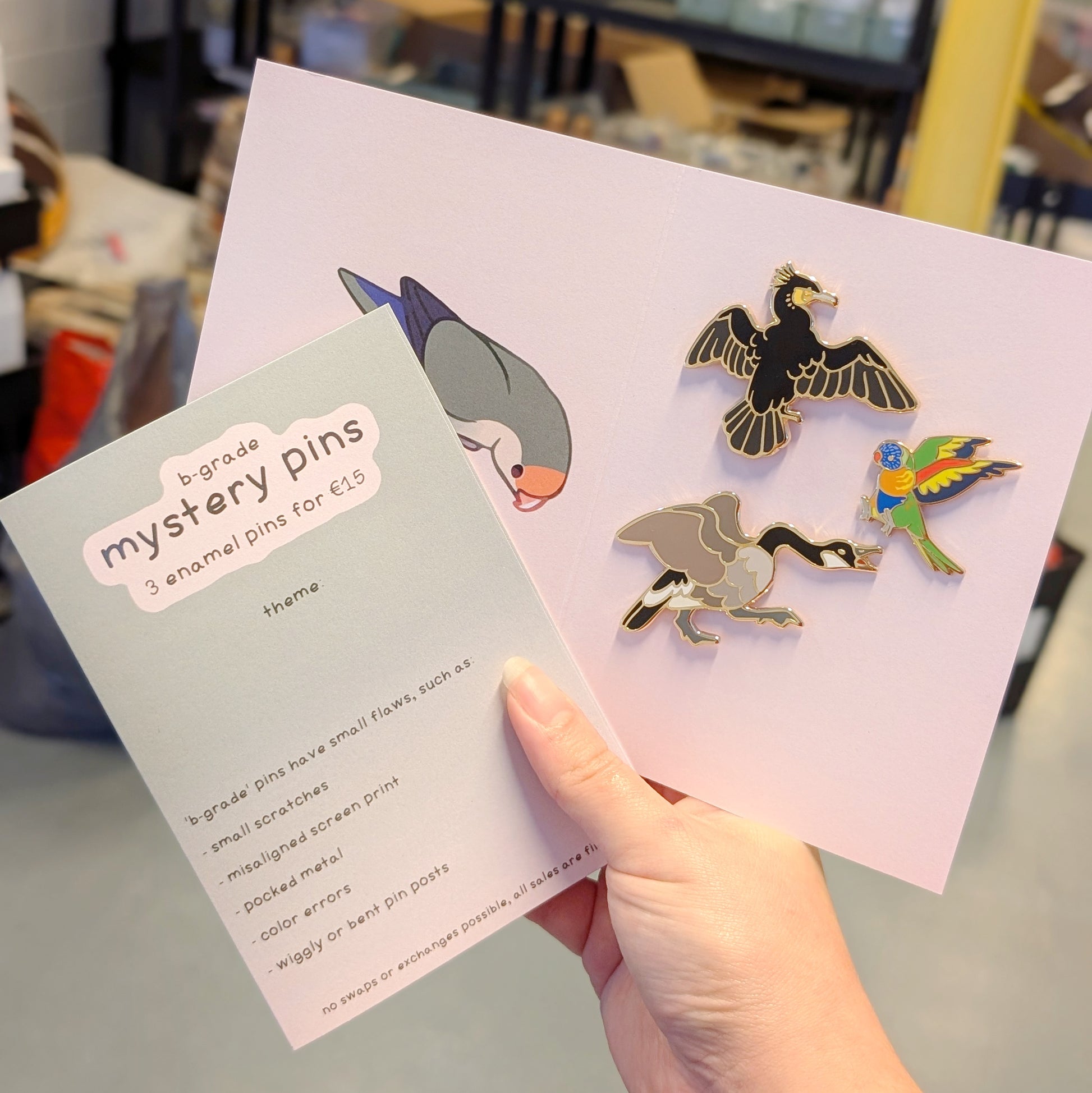 A set of 3 random b-grade pins.
